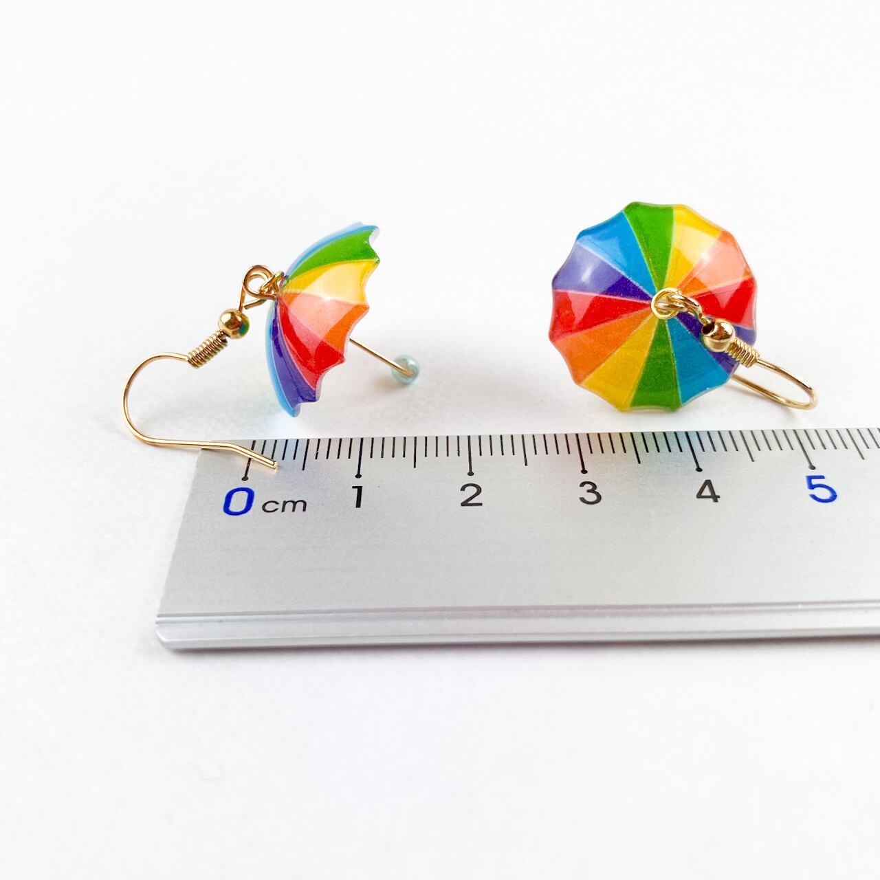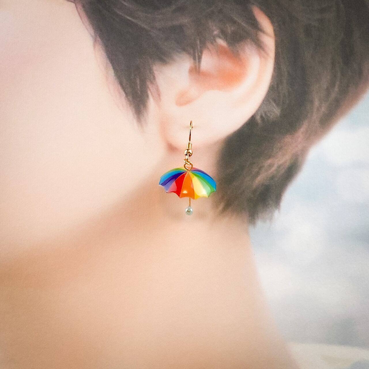 ミニチュア傘のピアス(虹色) 雨の日も楽しい気分♬︎