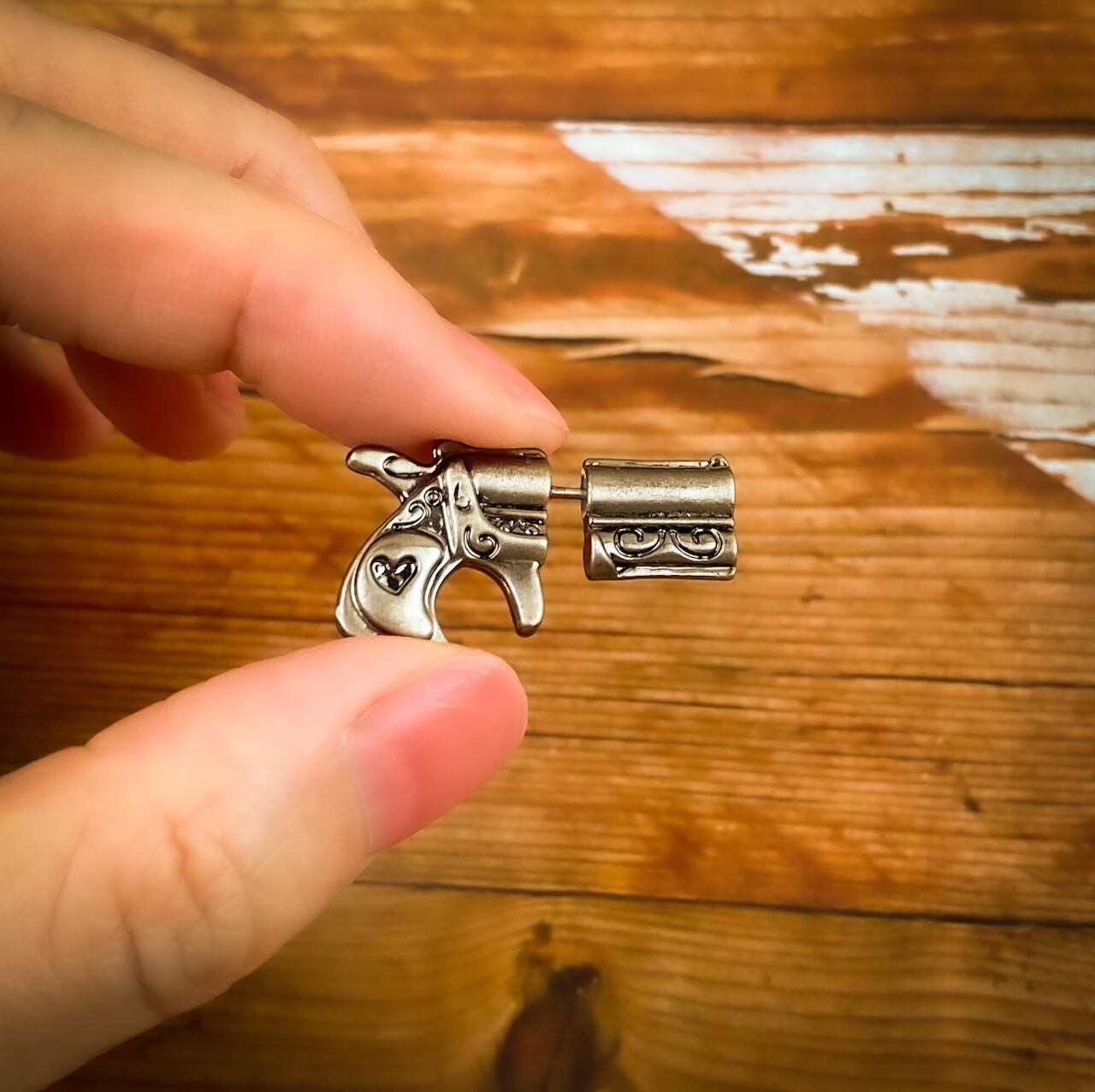 耳に刺さったピストル&弾丸おもしろピアス 【メンズ or ジェンダーレスにも!】